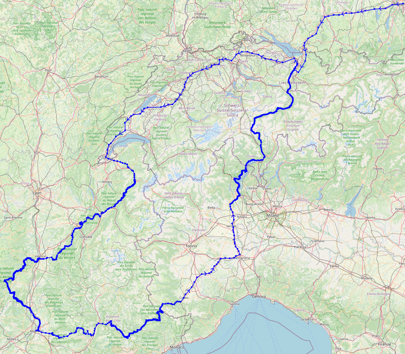 Weiterfahrt auf nicht weiter dokumentierten Passagen durch die franz. Seealpen nach Stresa (Lago Maggiore).