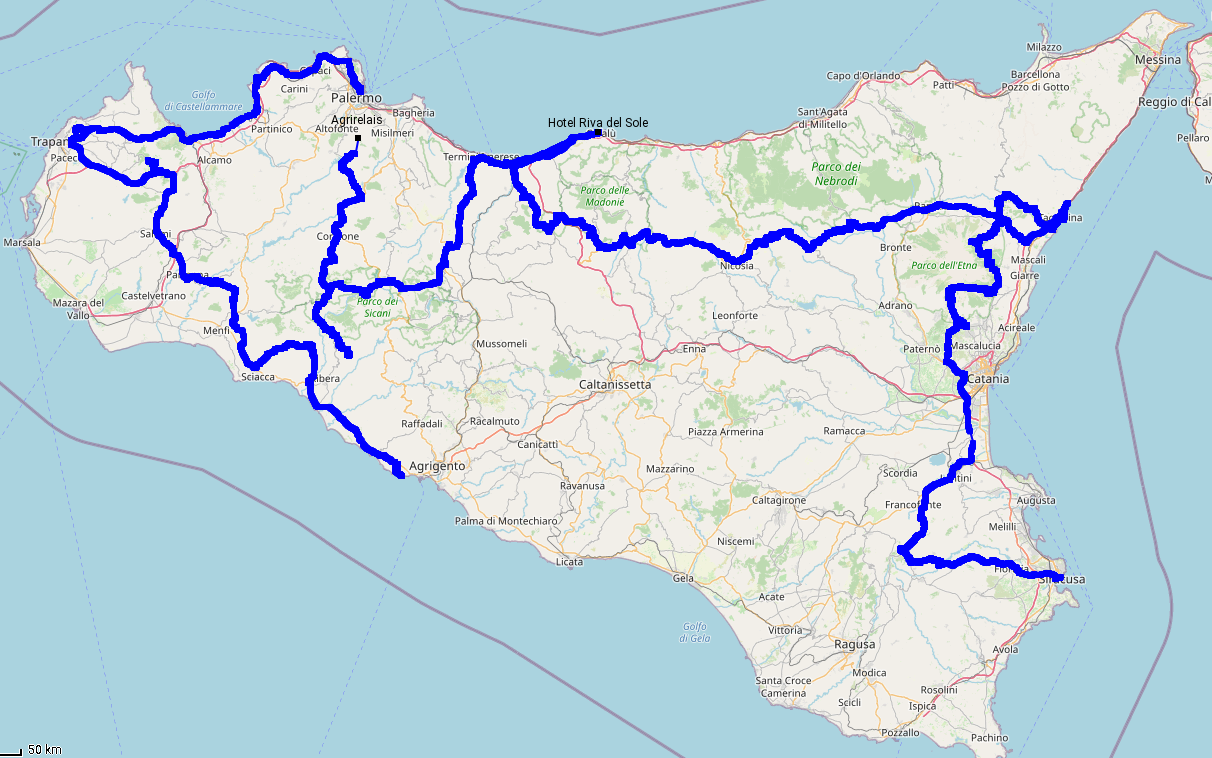 Über alternative Strecken (Stichwort "Gebüsch") erreichen wir bereits gegen 16:00 das Ziel Cefalu, wo wir in einem einfachen Hotel direkt am Meer übernachten.