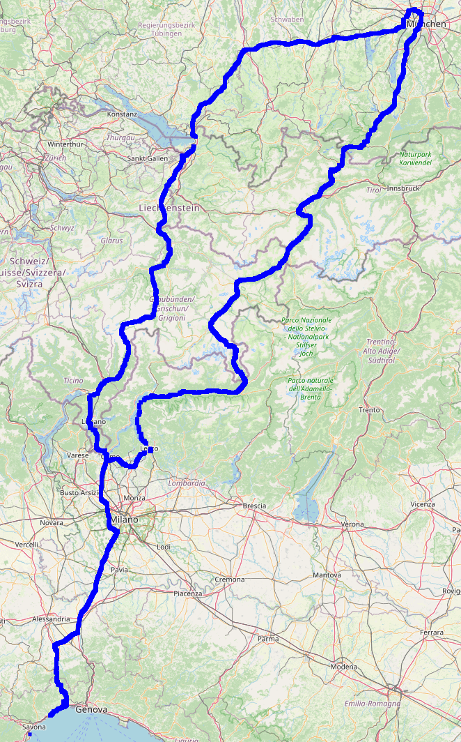 Wir sammeln uns auf einem Rastplatz bei Varraze und machen dort den nächsten Treffpunkt bei Como aus. Es regnet und ist kühl.